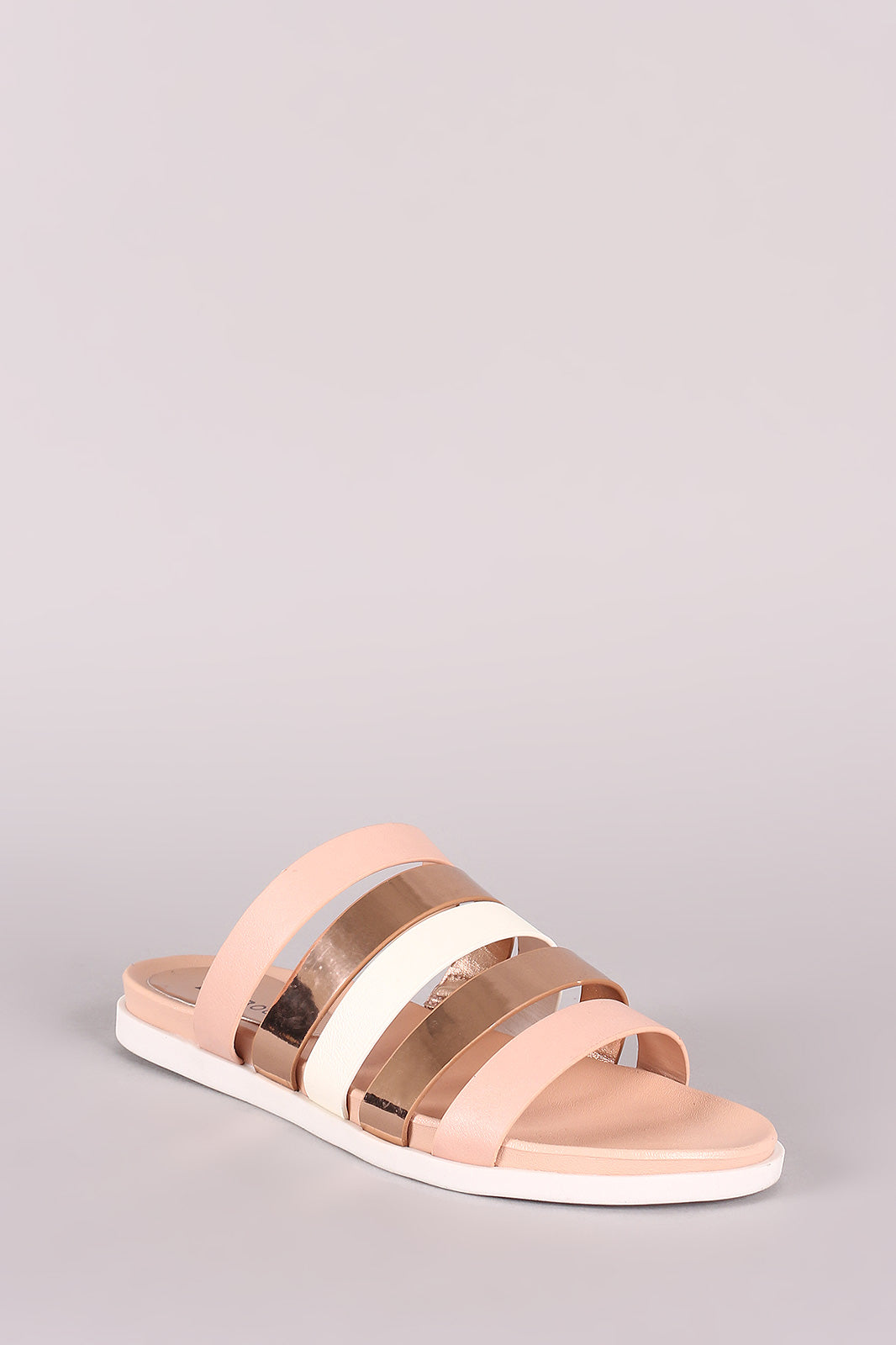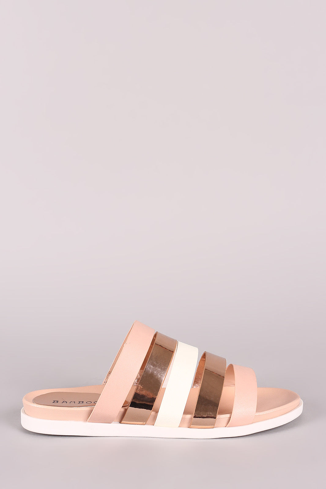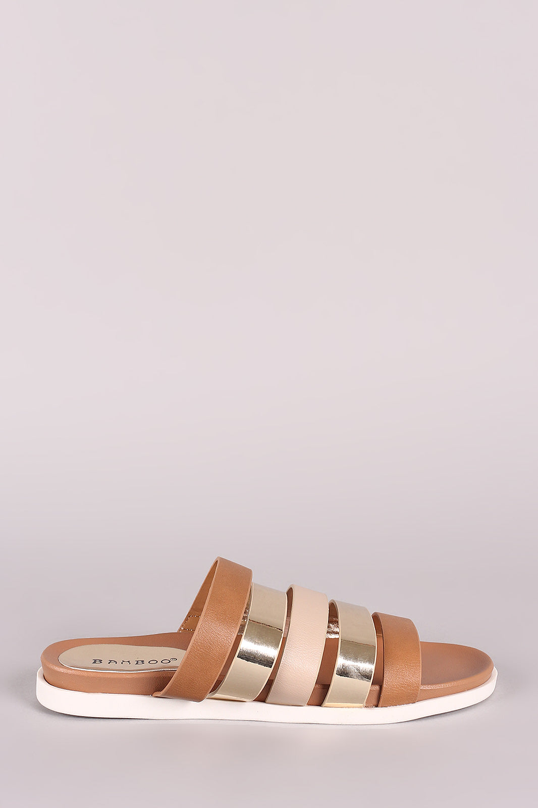 This open toe sandal features an open toe silhouette, multi-band across vamp, and lightly cushioned footbed.