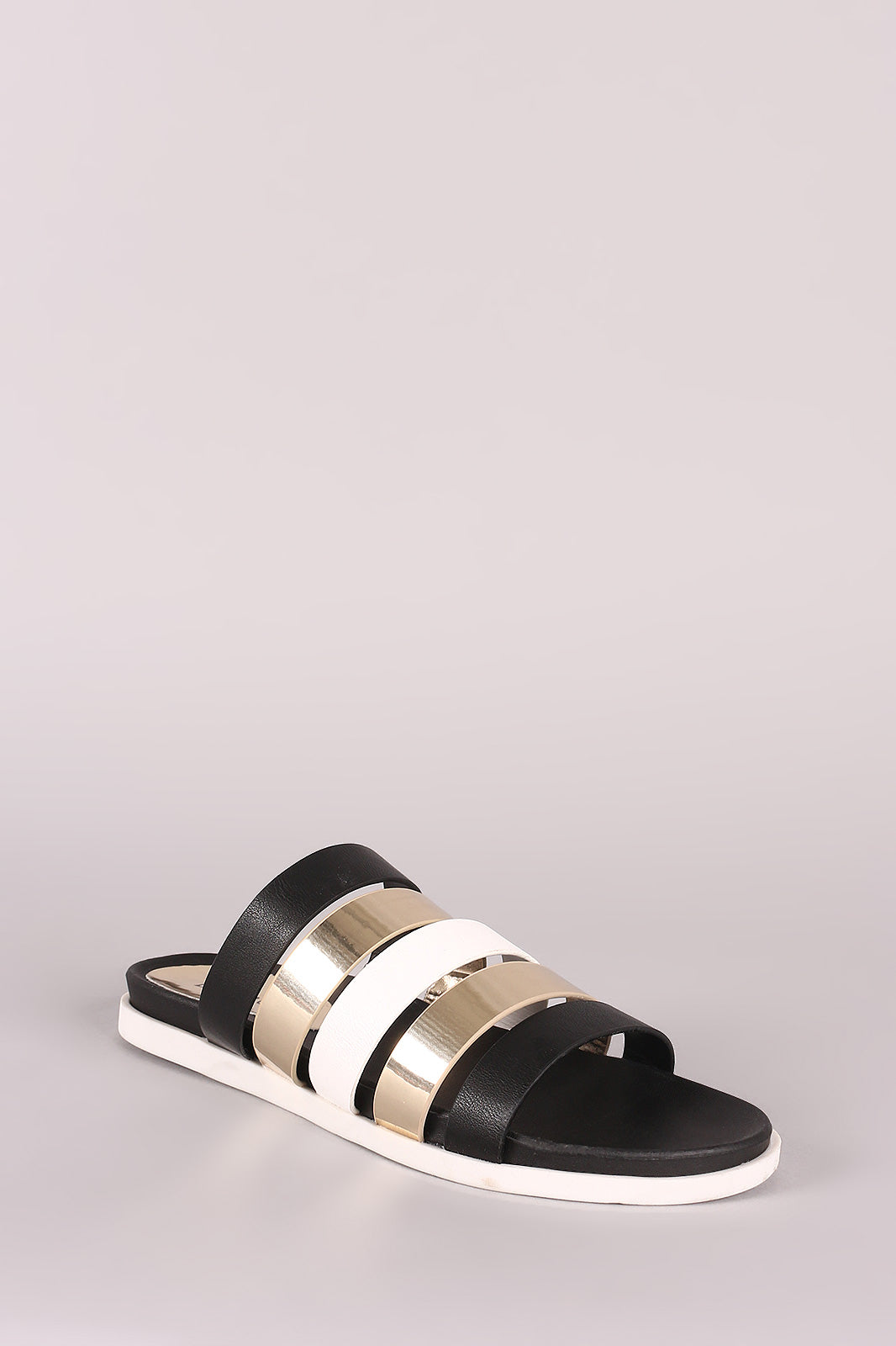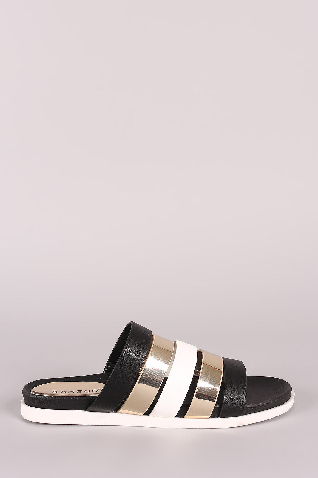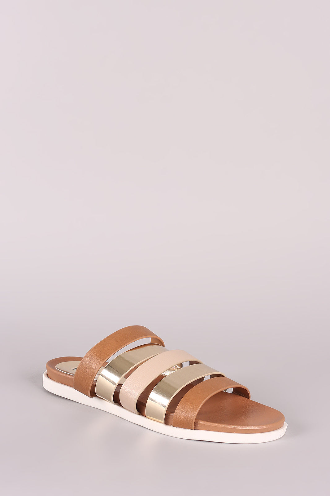 This open toe sandal features an open toe silhouette, multi-band across vamp, and lightly cushioned footbed.